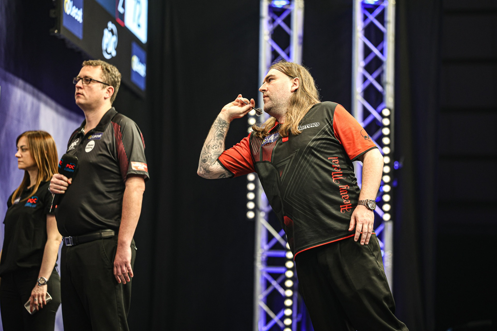 Zijn bijnaam - Heavy Metal - hoeft dan ook niet te verrassen: "Ik ben een grote metalfan, ik gooi met zware pijlen... That's it, simpel, is het niet? (lacht)." En of Searle met zware pijlen gooit. De meeste spelers gooien met pijlen van 22-24 gram. Ryan Searle met darts van 34 gram. Ooit zelfs met 36 gram. "Ik voel me comfortabel om met zware pijlen te spelen. Ik ben het altijd gewoon geweest om er mee te gooien. Zelfs voor ik bij de PDC kwam, gooide ik al met zwaardere pijlen. Die van 34 gram lijken me het best te liggen."Searle stapte eind 2023 over van materiaalsponsor Loxley naar Harrows. Dat kan link zijn - vraag maar aan Michael Smith die bij Shot nog niet zijn niveau als wereldkampioen van weleer haalde en ook Mike De Decker struggelde aanvankelijke met zijn nieuwe darts van Mission - maar bij Searle lijkt de overstap probleemloos te verlopen. "Ah, ik had gewoon geluk", aldus de man uit Wellington. "Ik kon met mijn nieuwe pijlen bij de start van het seizoen meteen drie finales halen op de Players Championships. Ook op de Euro Tour liep het goed en ik was vertrokken. Het vertrouwen was er van bij het begin."